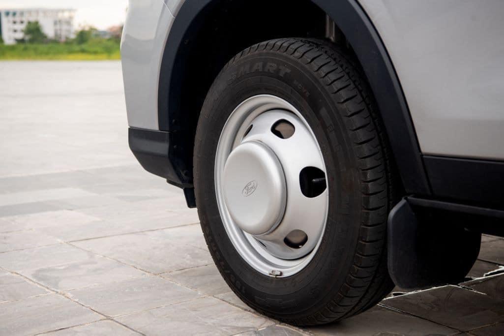 Transit 2024 sử dụng phanh trước sau đều là phanh đĩa, bản Trend và Premium trang bị lốp 235/65R16C vành hợp kim còn bản Premium plus trang bị lốp 195/75R16C vành thép với hàng lốp phía sau là lốp đôi.
