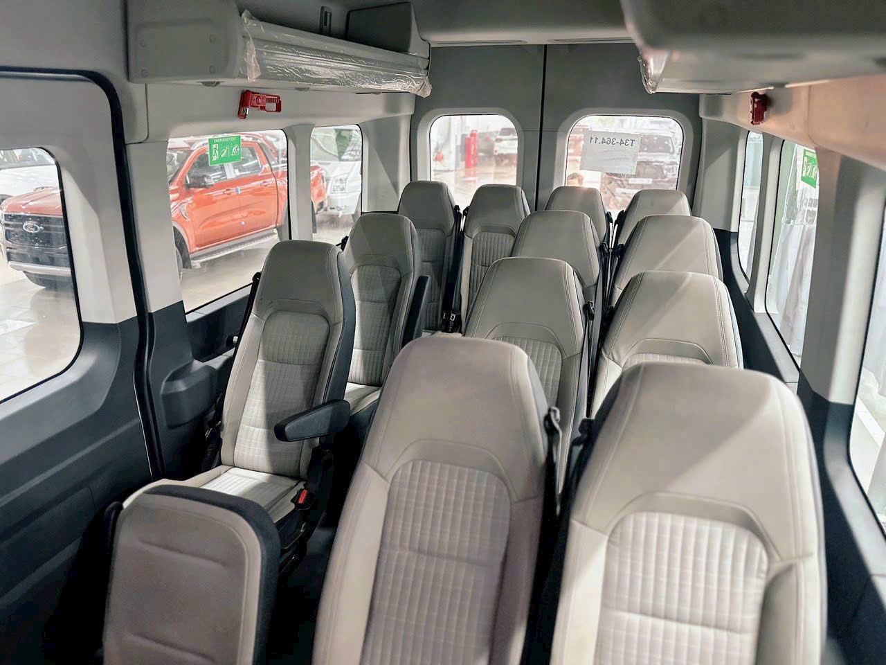 Không gian nội thất trong xe Transit 2024 thiết kế rộng rãi hơn so với phiên bản cũ cùng với đó là sự thay đổi và trang bị hiện đại đầy đủ tiện nghi trong xe khiến người ngồi trên xe thoải mái hơn trong suốt hành trình. Các phiên bản của Transit được trang bị ghế nỉ kết hợp Vinyl cùng 2 giá hành lý phía trên ở 2 bên.