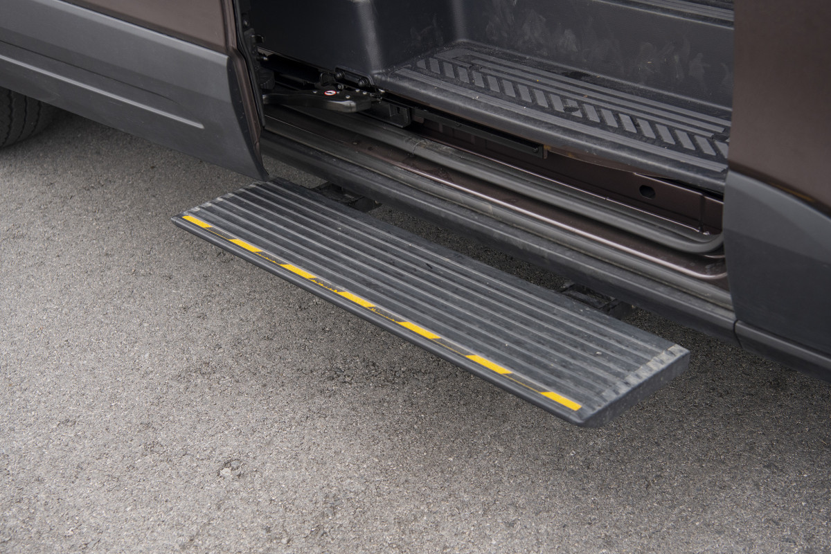 Bậc bước chân điện và trang bị cửa trượt điện trên tất cả 3 bản rất tiện dụng trong quá trình vận hành.